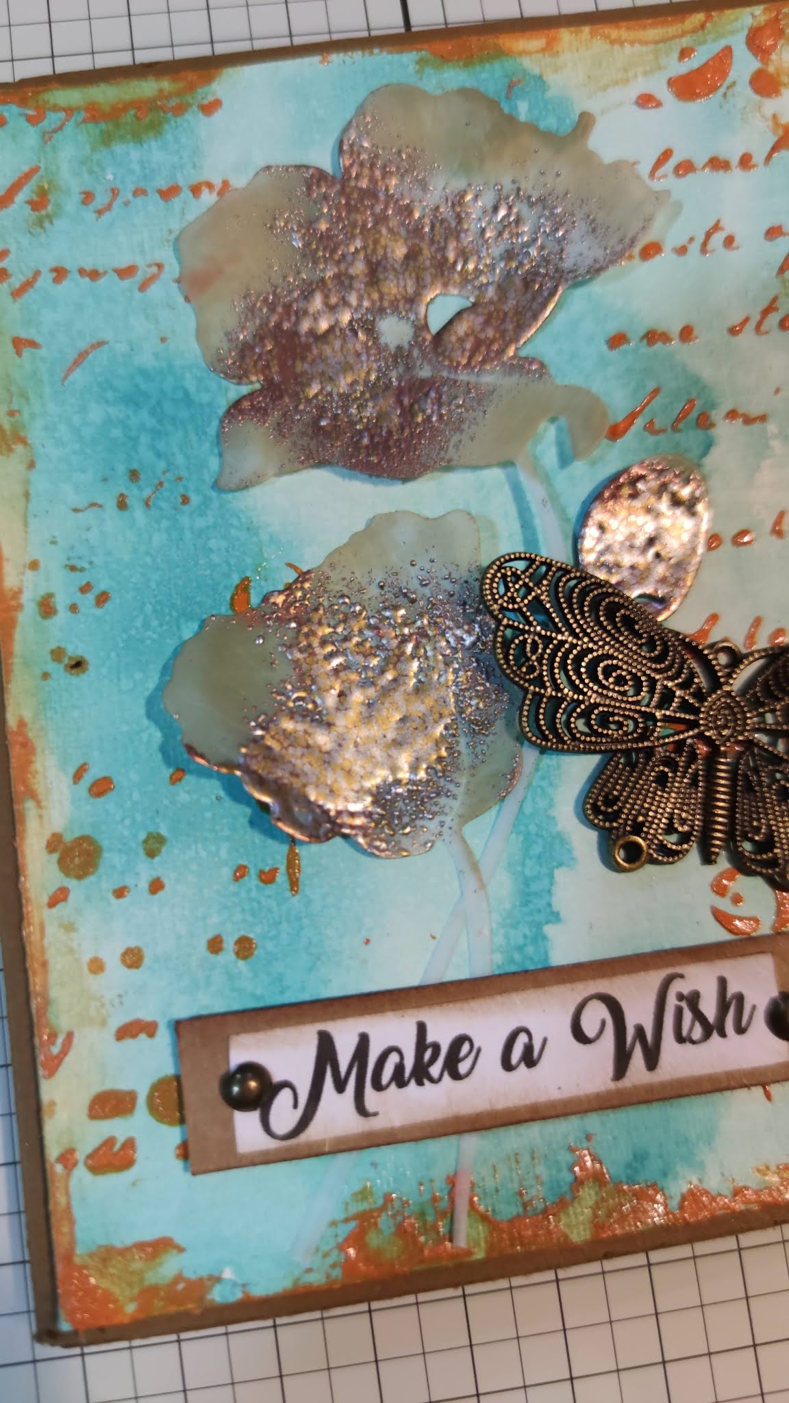 Una base de corcho con forma de hoja, con tecnicas de mixed media.